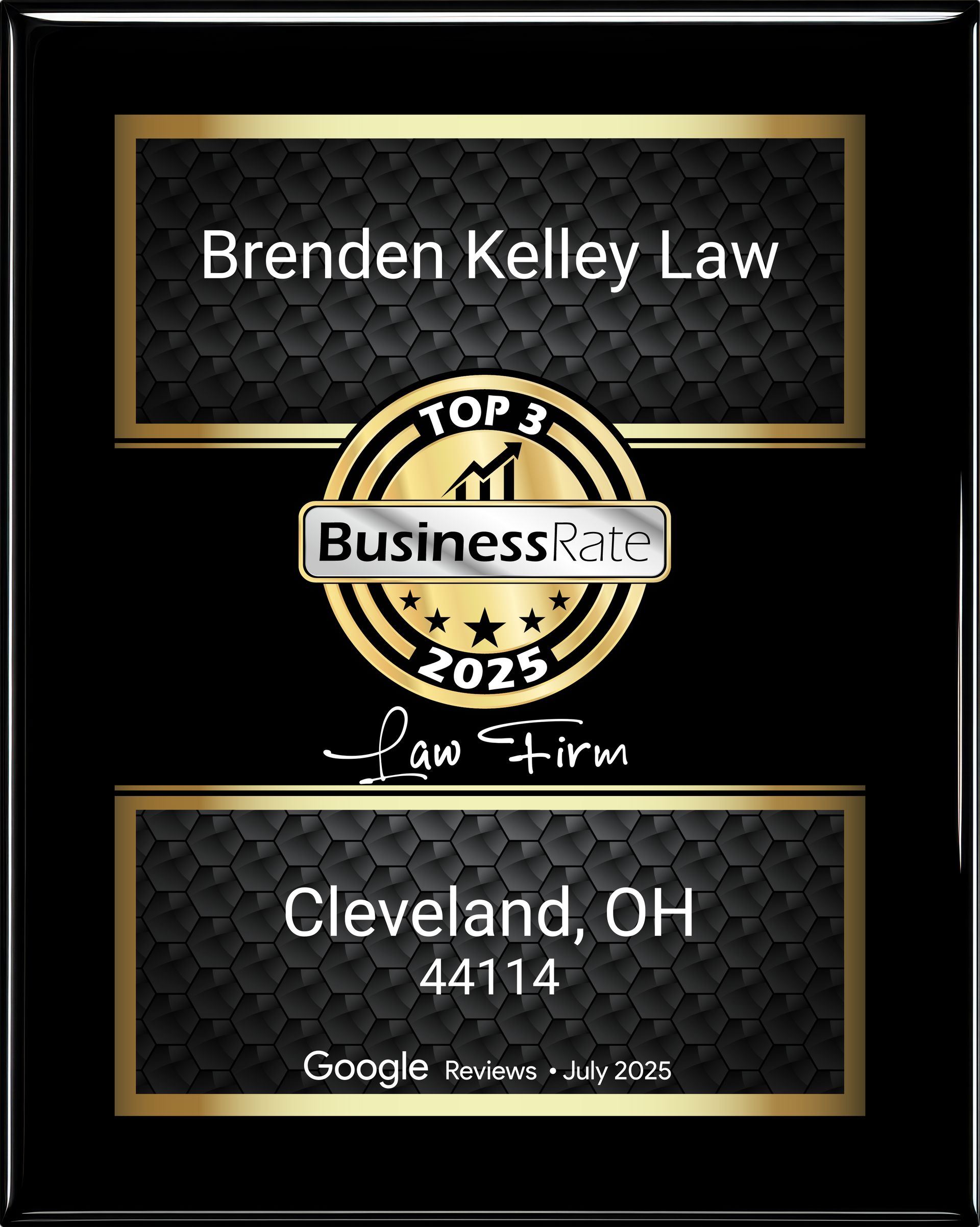 BusinessRate.com Ranks Brenden Kelley Law Top 3 in Cleveland (44114) for 2025